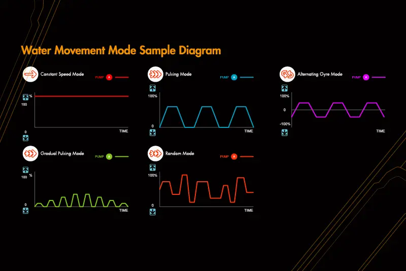 - Fully programmable 24 hour flow cycles with different water movement modes